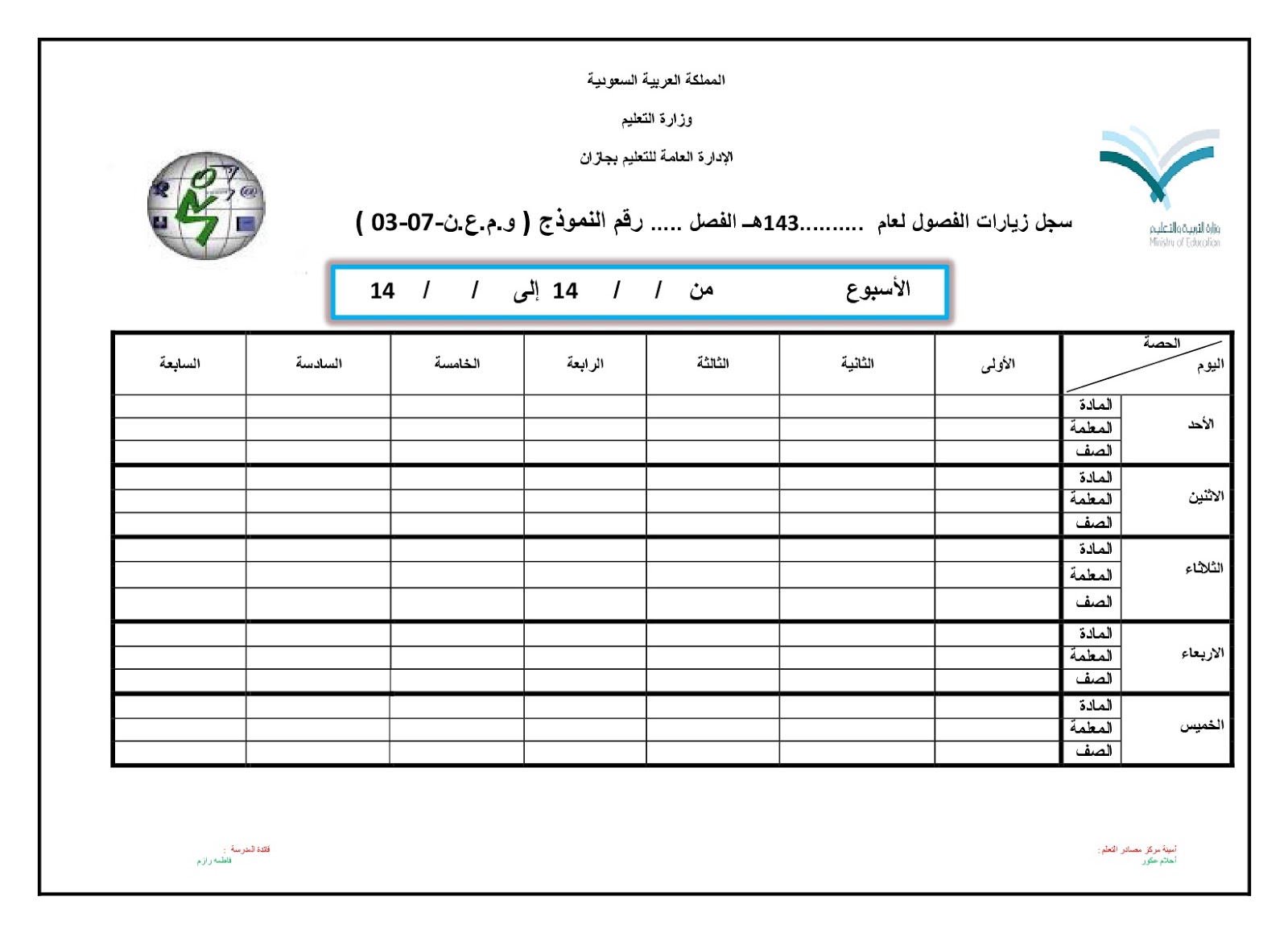 نماذج سجلات مركز مصادر التعلم حسب الدليل الإجرائي مصادر الصقرية