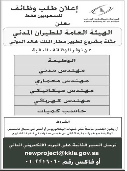 وظائف مطلوب مشرفين امن مشروع مطار الملك خالد الدولي وظائف السعودية ساحة الوظائف